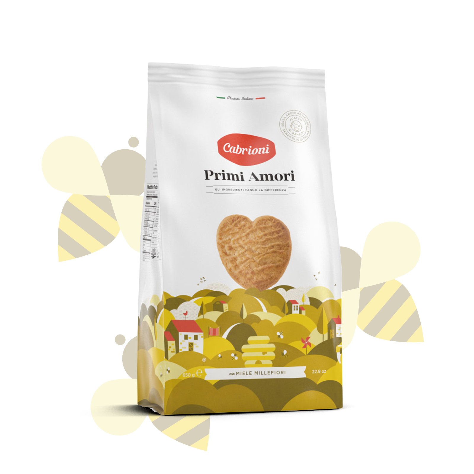 Farina di frumento, zucchero, olio vegetale di cocco, burro, uova fresche, latte scremato in polvere, miele 1%, agenti lievitanti (bicarbonato di ammonio, difosfato disodico, bicarbonato di sodio), sale, emulsionante (lecitina di soia), aromi naturali.